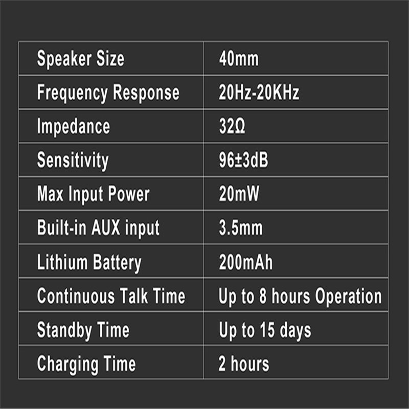 【Long Working Hours,200mAh Rechargeable Battery】 For daily use, after each full charge, this headset can works at least 8 hours with no stop.The battery inside is the quality rechargeable lithium battery;